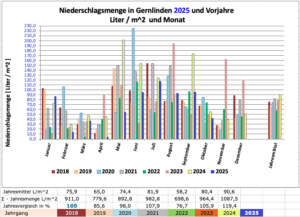 Die für Gernlinden-Nord gemessene Niederschlagsmenge je Monat, in Liter pro Quadratmeter :